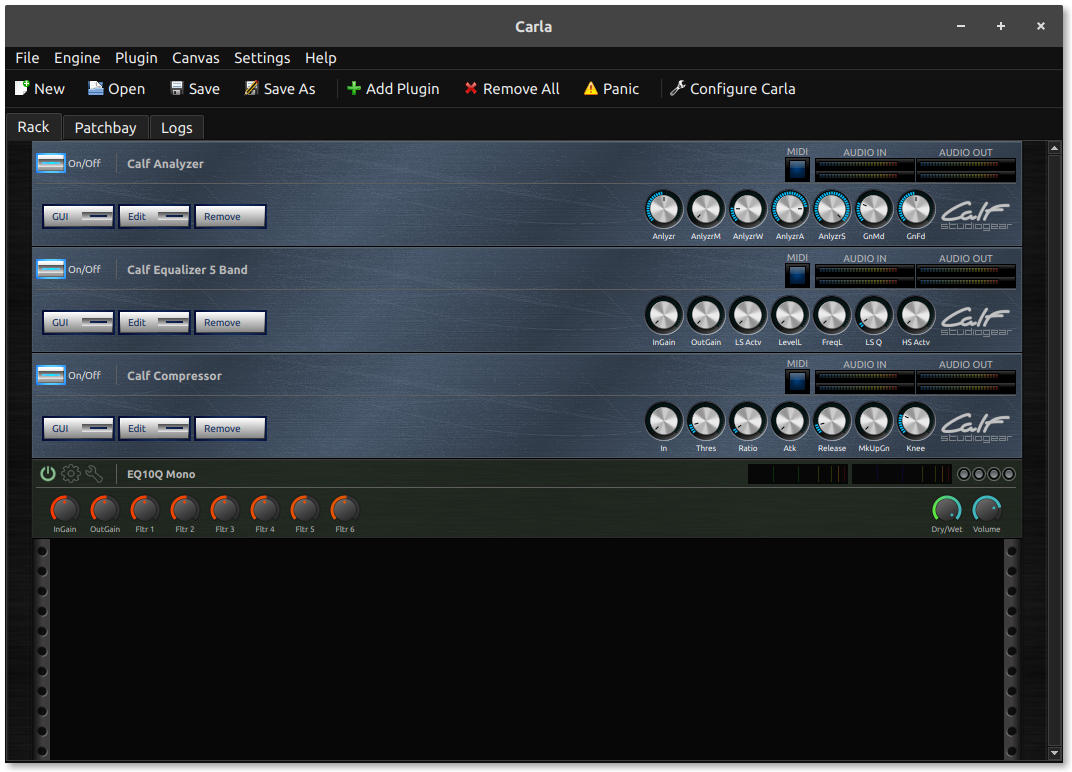 Carla is a virtual Audio Rack and Patchbay, otherwise known as a plugin host, that can use audio plugins normally used in a DAW such as Ardour as if it was a rack of audio hardware. Some of its features include: