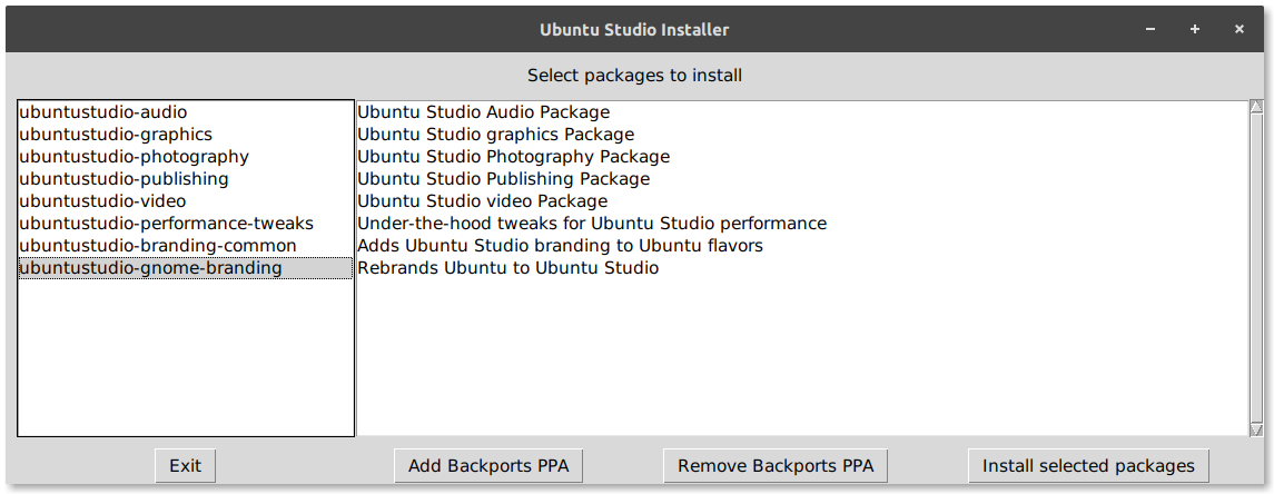 With these changes, Ubuntu Studio Installer allows you to install Ubuntu Studio as a ToolKit on top of your existing Ubuntu installation, including official flavors (Kubuntu, Xubuntu, Lubuntu, Ubuntu MATE, Ubuntu Budgie), although our default ISO installer is based on Xubuntu.