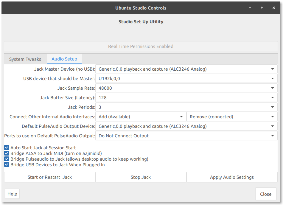 This is really a bit of a bugfix for the version of Ubuntu Studio Controls that landed in 18.10. Ubuntu Studio Controls dramatically simplifies audio setup for the JACK Audio Connection Kit on your Ubuntu installation, and is the only GUI tool that enables JACK to automatically detect hotplugged USB audio devices along with allowing more than one audio device to be connected to JACK simultaneously.
