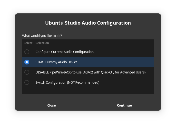 Due to the maturity of PipeWire, we now consider the traditional PulseAudio/JACK setup, where JACK would be started/stopped by Studio Controls and bridged to PulseAudio, deprecated. This configuration is still installable via Ubuntu Studio Audio Configuration, but we do not recommend it. Studio Controls may return someday as a PipeWire fine-tuning solution, but for now it is unsupported by the developer. For that reason, we recommend users not use this configuration. If you do, it is at your own risk and no support will be given. In fact, it’s likely to be dropped for 24.10.